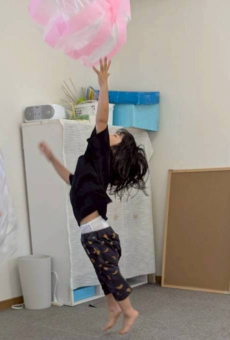 袋を目と手で追い、キャッチする動作は目と手の協調性やバランス感覚が養われます✨