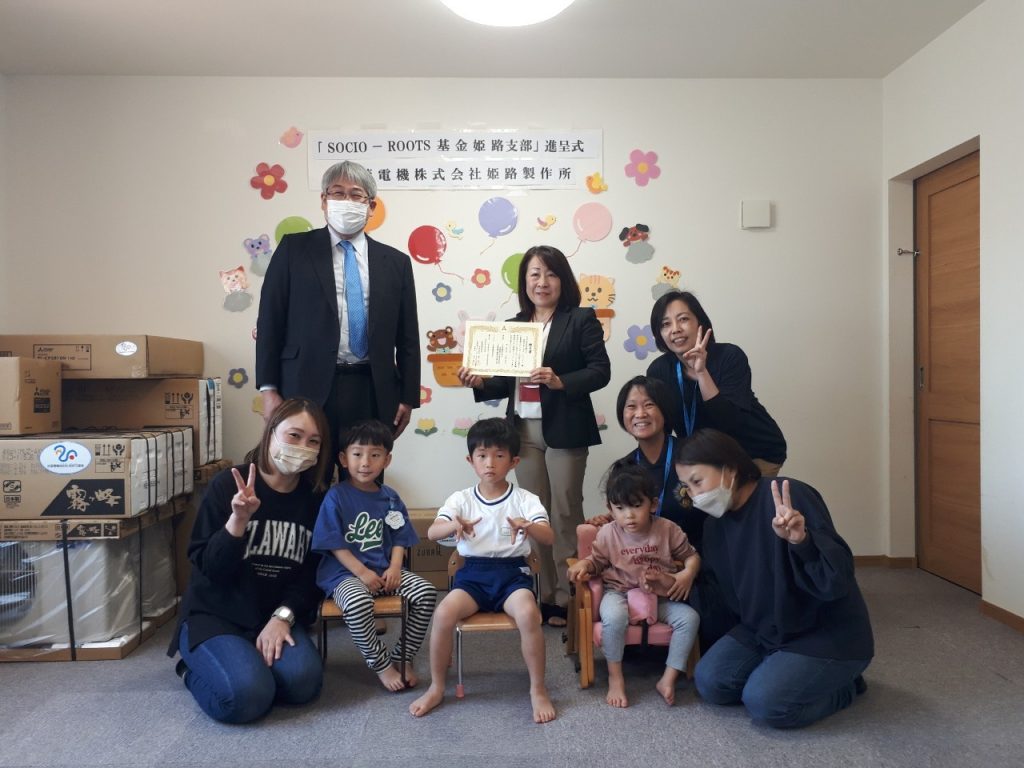 ニュース 2023/05/16ご支援いただきました。 この度、三菱電機株式会社様と三菱電機SOCIO-ROOTS基金様より、エアコンや掃除機などの三菱電機様の製品を寄付していただきました。贈呈式にはおひさま園の子どもたちも参加させていただき、おひさまCLUBの子どもたちが書いてくれたメッセージカードを渡しました。この度は、誠にありがとうございました。大切に使わせていただきます。