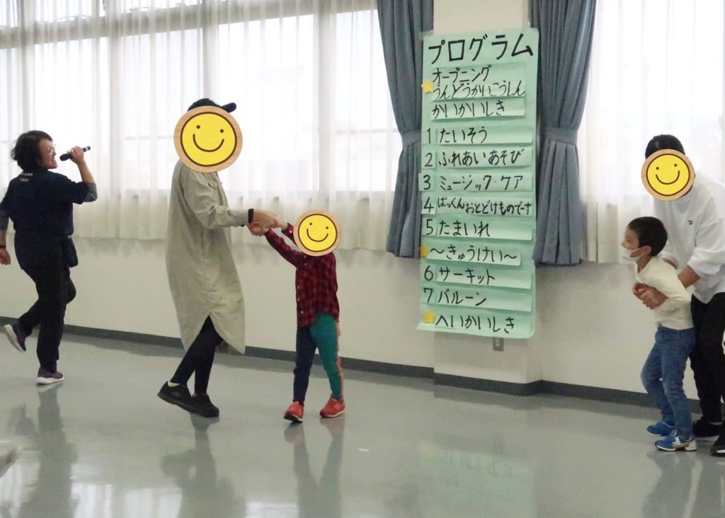 まずは、体操やふれあいあそびです。お父さん、お母さんと一緒に身体を動かして、心も身体もほぐしましょう。